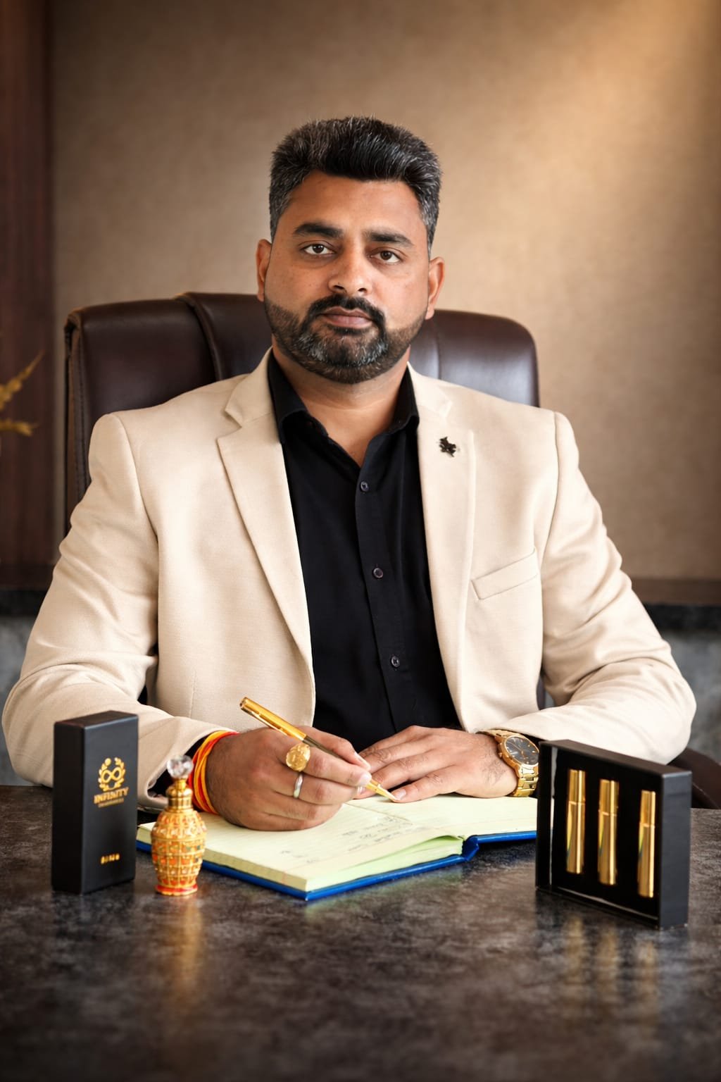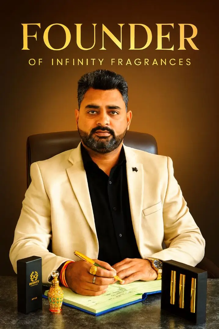 the Founder of Infinity Fragrances, is a man who doesn’t just create fragrances — he feels them.For him, a scent is not a product; it’s a living emotion — invisible, yet unforgettable.